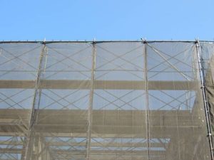 飛散防止ネットとは、足場を外側から覆うように張り巡らせることにより、塗料などが周囲に飛び散るのを防ぐネットです。