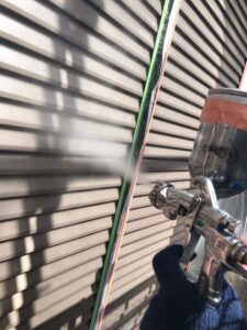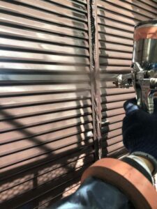 スプレーガンと雨戸の距離を均一に保ちながら吹いていきます‼